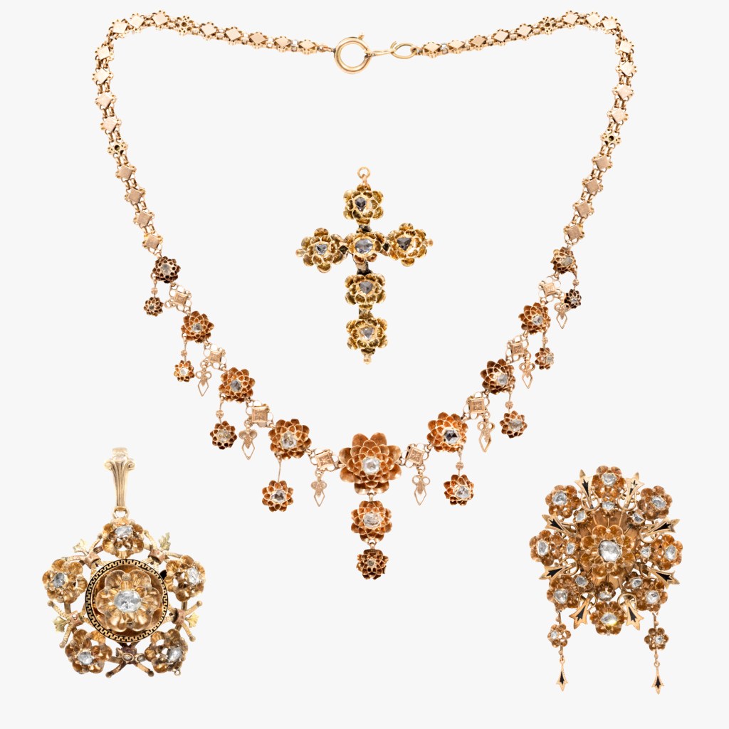 Set Biedermeier din aur bicolor cu diamante