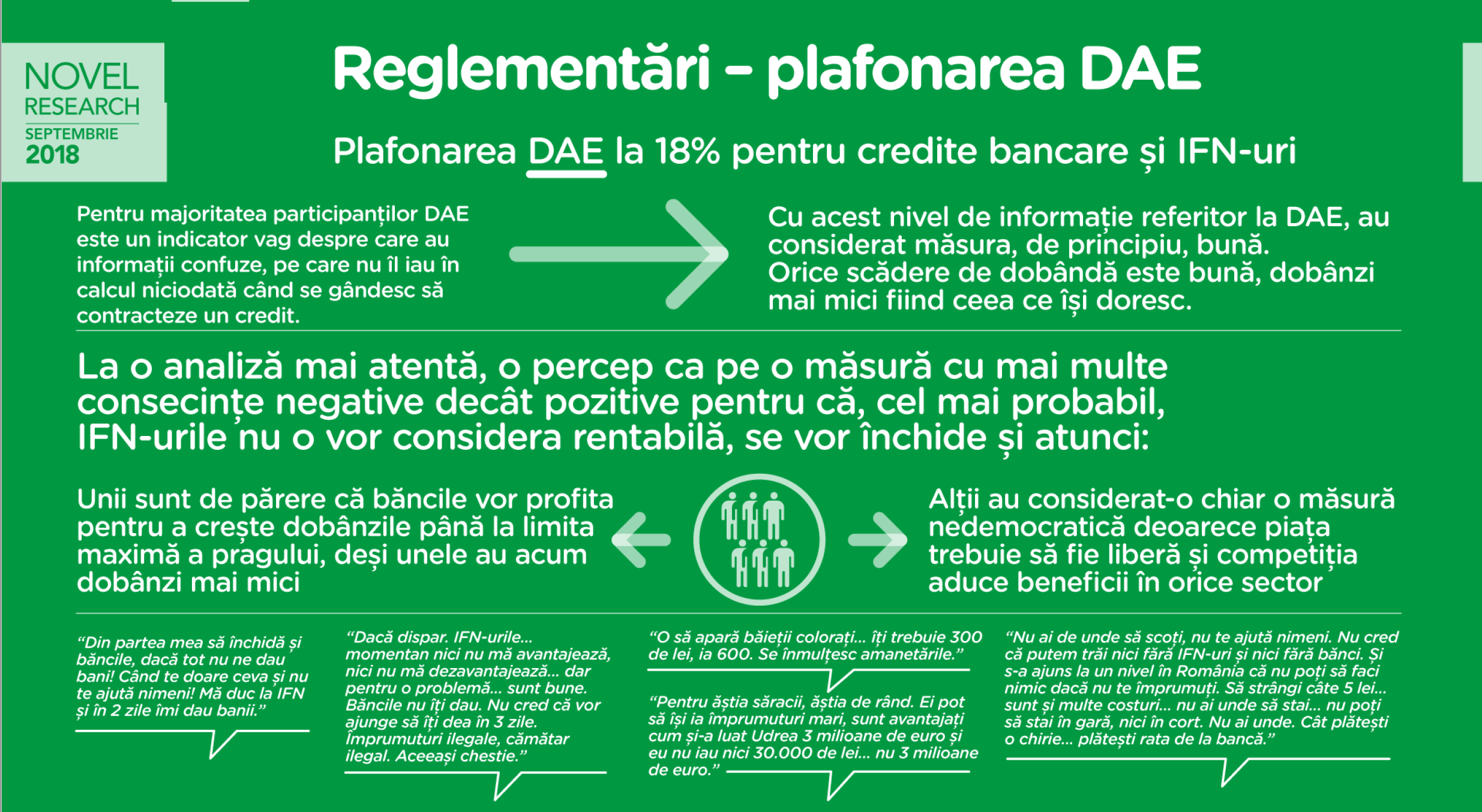 Deşi 40% dintre respondenţi au o percepţie negativă despre IFN-uri, la o analiză mai atentă a efectelor pe care dispariţia acestora le-ar putea avea, 68% consideră că, fără alternativa IFN-urilor, românii s-ar îndrepta către jucătorii nereglementaţi sau ilegali, ceea nu ar face decât să adâncească problema lor socială. În acelaşi timp, mai mult de 62% consideră că IFN-urile sunt cea mai bună alternativă pentru românii nebancabili.
