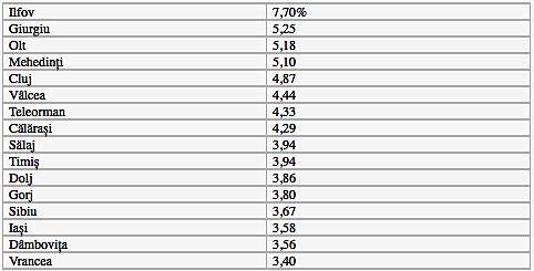 Teleorman, Botosani, Mehedinti, Dambovita, Gorj, Ialomita si Suceava au scaderi de peste 4%.