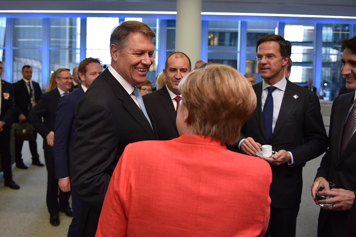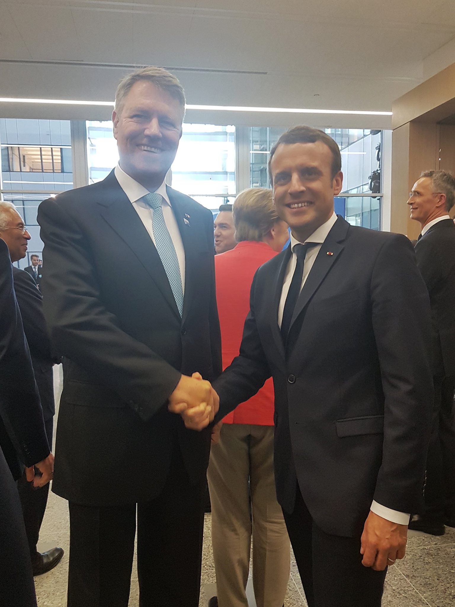 Presedintele Klaus Iohannis a mers, joi, la Bruxelles, pentru reuniunea sefilor de stat si de guvern ai NATO, unde a fost fotografiat alaturi de presedintele Statelor Unite, Donald Trump, premierul Marii Britanii, Theresa May, cancelarul german Angela Merkel, premierul Canadei, Justin Trudeau, dar si alaturi de noul presedinte al Frantei, Emmanuel Macron.
