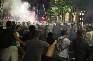 Violenţe au izbucnit la Belgrad şi în alte oraşe în timpul a cinci zile de manifestaţii, unii dintre protestatari lansând pietre şi dispozitive pirotehnice spre forţele de ordine, care au replicat cu grenade şi gaze lacrimogene.
