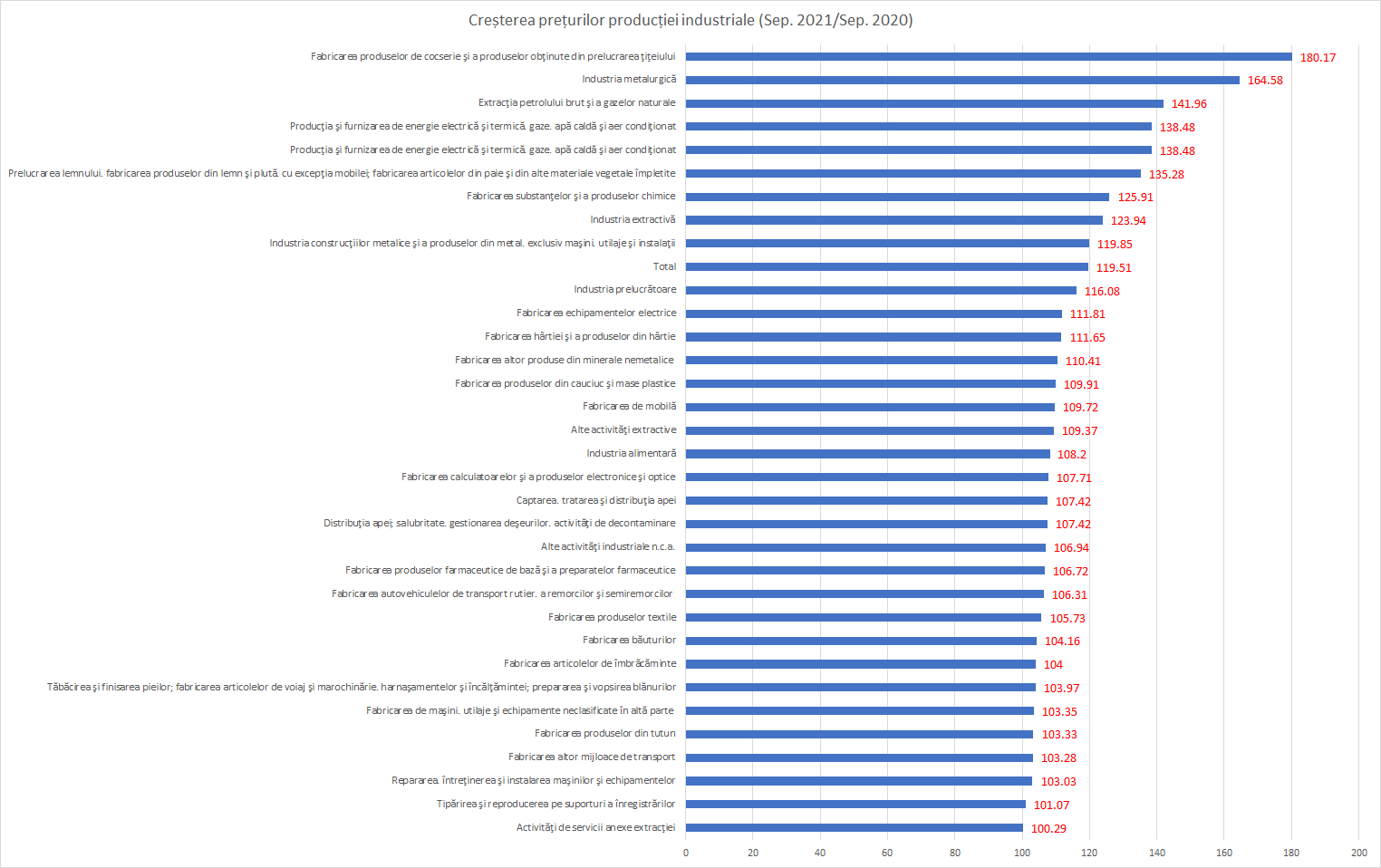 Mai jos, aveți reprezentat grafic topul acestor creșteri pe activități industriale: