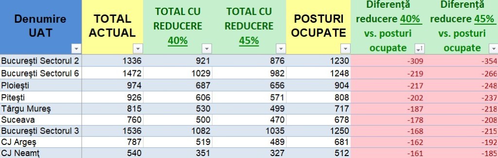 Iar în acest tabel, care cuprinde 3.228 de instituții, din toate județele, Primăria Sectorului 2 se află pe primul loc, după numărul posturilor tăiate ce trebuie eliminate.