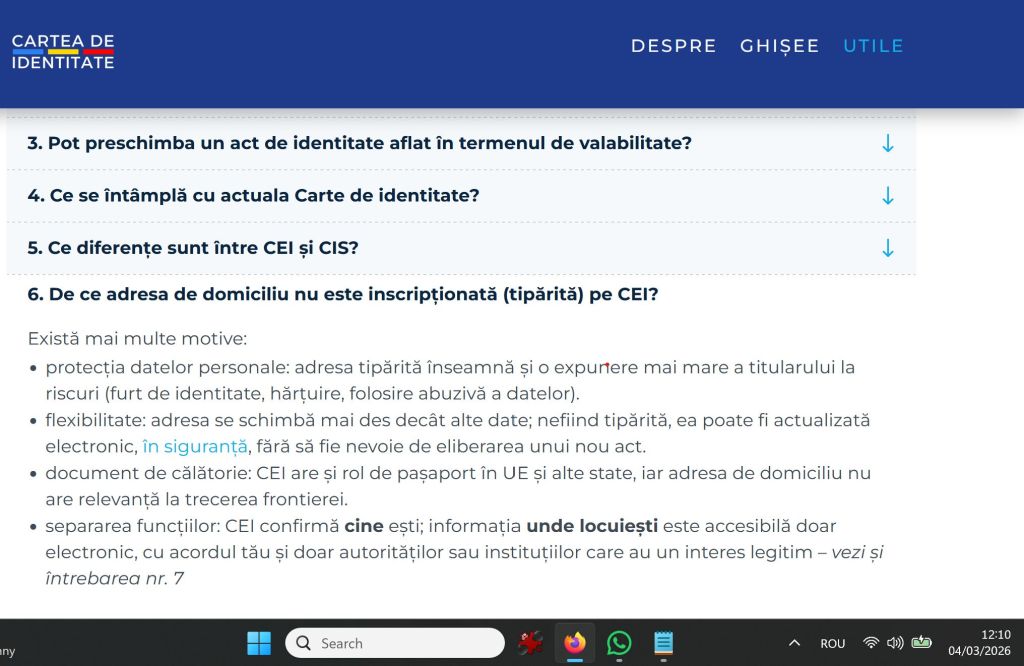 Într-adevăr, pe site-ul oficial de promovare a cărții electronice de identitate la întrebarea „de ce adresa de domiciliu nu este inscripționată (tipărită) pe CEI?”, Ministerul Afacerilor Interne (MAI) spune că un motiv este flexibilitatea: