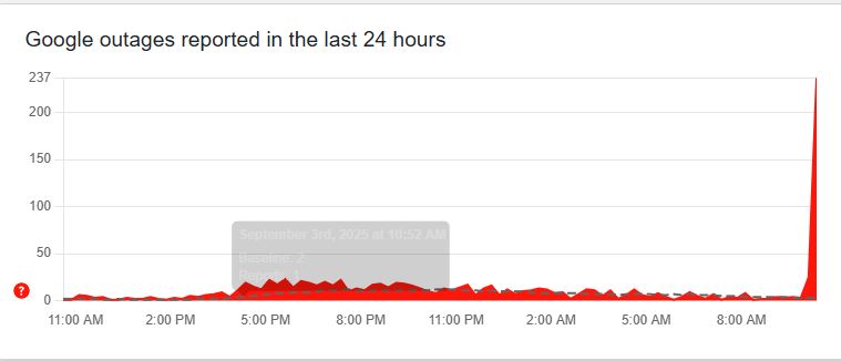 - UPDATE 12:53 Numărul reclamațiilor a început să scadă joi după-amiaza și situația pare în curs de rezolvare, deși Google nu a oferit deocamdată niciun comentariu cu privire la pană;