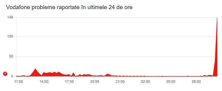 Acum este posibil ca problemele să fie legate de furnizorul de servicii de internet. Datele DownDetector arată că numărul reclamațiilor legate de serviciile VODAFONE a crescut brusc în același interval de timp în care au fost raportate și problemele cu serviciile Google.