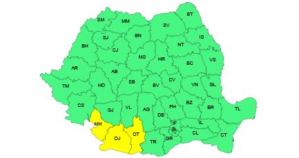 Trei județe vor fi afectate: Dolj, Mehedinți și Olt.
