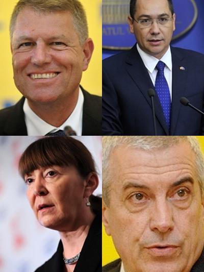 In cursa electorala pentru Cotroceni au intrat Victor Ponta (PSD-UNPR-PC), Klaus Iohannis (Alianta Crestin-Liberala), Elena Udrea (Partidul Miscarea Populara), Kelemen Hunor (Uniunea Democrata Maghiara din Romania), Dan Diaconescu (Partidul Poporului – Dan Diaconescu), Constantin Rotaru (Partidul Alianta Socialista), Corneliu Vadim Tudor (Partidul Romania Mare), William Brinza (Partidul Ecologist Roman), Mirel Mircea Amaritei (Prodemo) si Szilagyi Zsolt (Partidul Popular Maghiar din Transilvania).