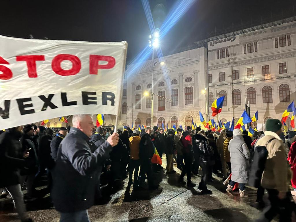 Câteva mii de persoane s-au adunat în Piața Universității joi seară pentru a protesta împotriva „legii Vexler” privind combaterea extremismului, în cadrul unei manifestații organizate de eurodeputatul Claudiu Târziu și susținute de AUR, partidul din care Târziu a făcut parte până anul trecut. Demonstranții au plecat apoi în marș spre sediul Guvernului. „Avem nevoie de un stat al românilor, care să îi reprezinte pe români, nu interesele străine”, a declarat Târziu, pe scena manifestației. La un moment dat, când protestarii încă se aflau în Piața Universității, pe una dintre clădiri a fost proiectat mesajul „Marș la Moscova”.