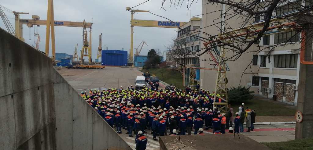 „În această dimineaţă, începând cu ora 7.30, sute de salariaţi s-au adunat la pavilionul administrativ din incinta Şantierului Naval Damen Shipyard Mangalia fiind nemulţumiţi de faptul că ieri ar fi trebuit să primească drepturile salariale restante, cel puţin o parte dintre ele, şi nu au fost plătite. Nu mai au de lucru în continuare, ultima navă care a fost la reparaţii este gata, urmează să plece. Nu avem certitudinea că acest şantier va putea continua activitatea”, a declarat sindicalistul.