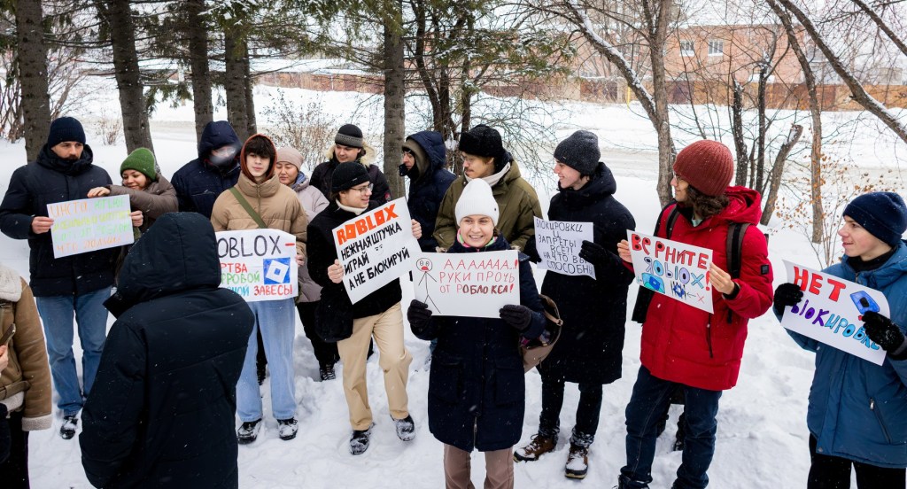 Duminică, la Tomsk, la 2.900 kilometri est de Moscova, câteva zeci de persoane au înfruntat zăpada pentru a ține pancarte pe care scria „Roblox este victima Cortinei de Fier digitale” în Parcul Vladimir Vysotsky, conform fotografiilor furnizate de un organizator al protestului.