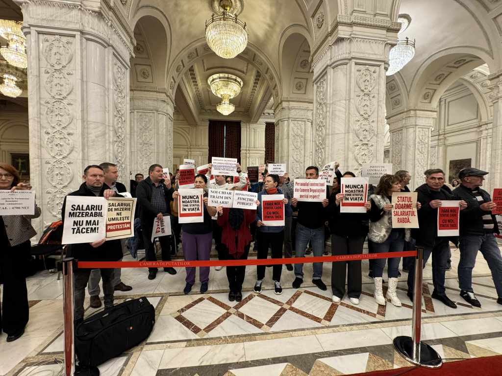 Angela Ghenciu, juristă și lideră de sindicat, a spus că protestează pentru sunt „salarii din ce în ce mai mici și ne pleacă oamenii pe acest fond. „Am zis să dăm un semnal către opinia publică și inclusiv aleșii poporului pentru că noi lucrăm, personalul tehnic, contractual, funcționari, pentru funcționarea Parlamentului”, a adăugat ea.
