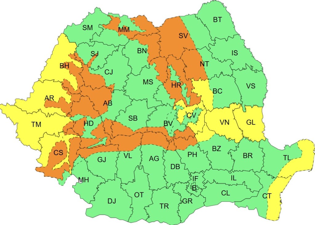 Temporar vor fi precipitații în cea mai mare parte a țării și local se vor acumula cantități de apă de 15…30 l/mp. La munte vor predomina ninsorile și se va depune strat de zăpadă consistent (20…50 cm).