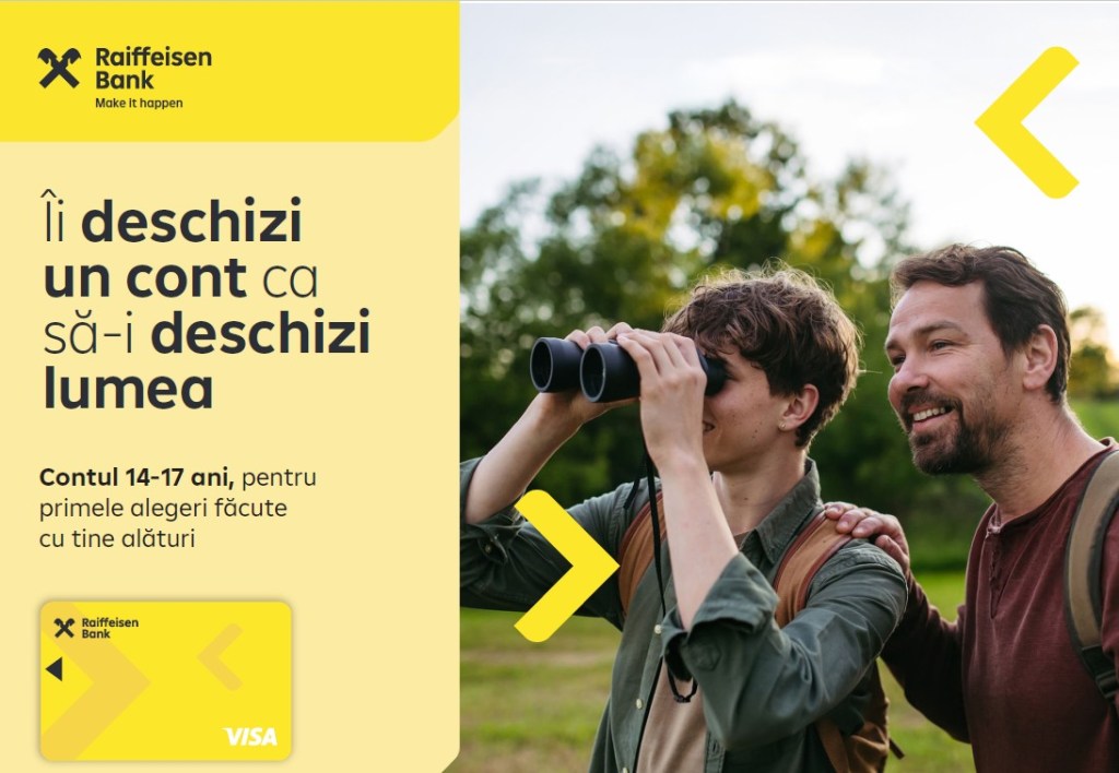 Raiffeisen Bank lansează un cont bancar destinat adolescenților cu vârsta mai mare de 14 ani și care nu au împlinit 18 ani, pentru a-i sprijini în primii pași către responsabilitate financiară. Acesta oferă tinerilor posibilitatea de a învăța să-și administreze banii într-un mod simplu, modern și sigur, adaptat nevoilor lor de zi cu zi.