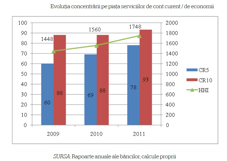 Piata serviciilor de cont curent prezinta un grad mediu de concentrare.