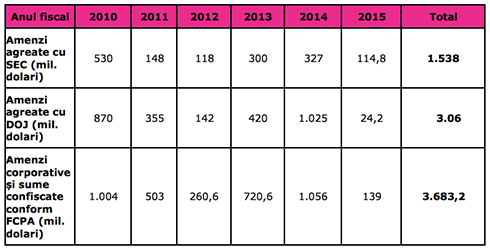 Cu toate acestea, pana in prezent, SEC si DOJ si-au mentinut atentia asupra persoanelor juridice, impunand amenzi in valoare cel putin 8 miliarde de dolari in ultimii ani, pentru practici de coruptie, dupa cum urmeaza.