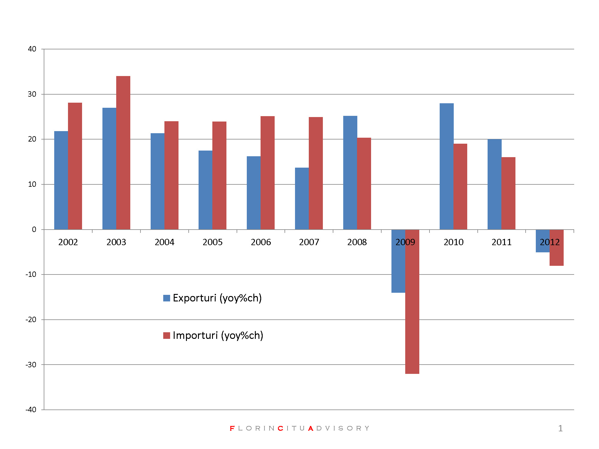 1. Ritmul de crestere al exporturilor si importurilo a ajuns negativ, ca in 2009. In august 2012 spuneam asta