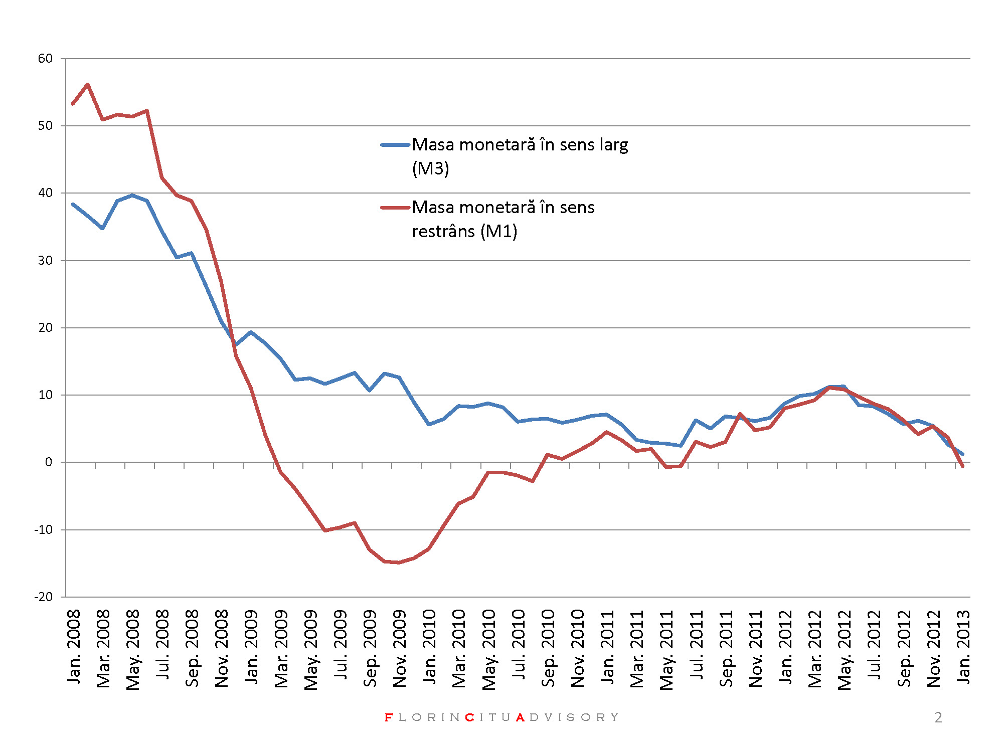 2. Ritmul de crestere al masei monetare,M1 si M3 (enodgena-creata de banci) a ajuns la zero si cred ca trece in teritoriul negativ.