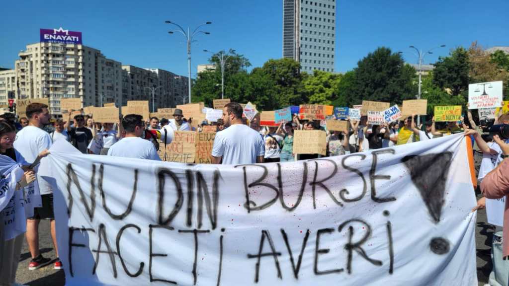 Câteva zeci de studenți și elevi au protestat joi și vineri în Capitală, dar și în alte orașe din țară, față de intenţia Guvernului de a reduce fondurile alocate pentru burse și numărul beneficiarilor.