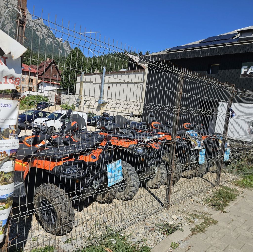 În drumul către telecabină am trecut pe lângă mai multe curți pline cu ATV-uri de închiriat. Lângă una dintre ele, un om pe la vreo 40 de ani fuma și mi-a povestit că nu prea are clienți pentru ATV-uri în timpul săptămânii, iar în weekend sunt mai puțini decât anul trecut. Închirierea costă 200 lei pe oră sau 350 lei la două ore, iar la 4-5 ore „mai negociem”.