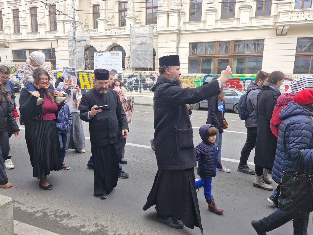 Printre participanți se află și preoți, concentrați să filmeze ce se întâmplă. Cu câteva zile înainte, Patriarhul Daniel a transmis un mesaj prin care susține evenimentul.