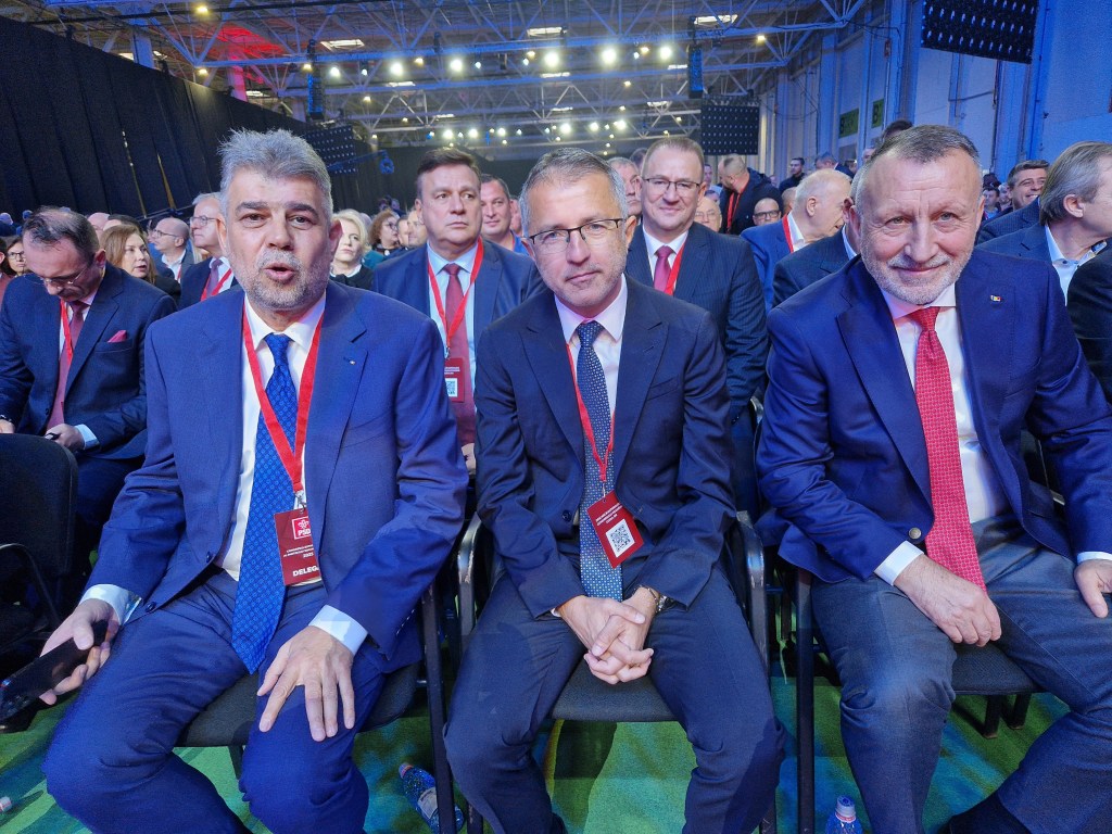 Fostul premier pare și el resemnat. Marcel Ciolacu a fost repartizat în primul rând, în partea stângă cum te uiți spre scenă. L-a evitat cât a putut de mult pe Mircea Geoană. A prins un loc lângă Dragoș Benea, europarlamentar, și lângă fostul său camarad de strategii, Paul Stănescu.