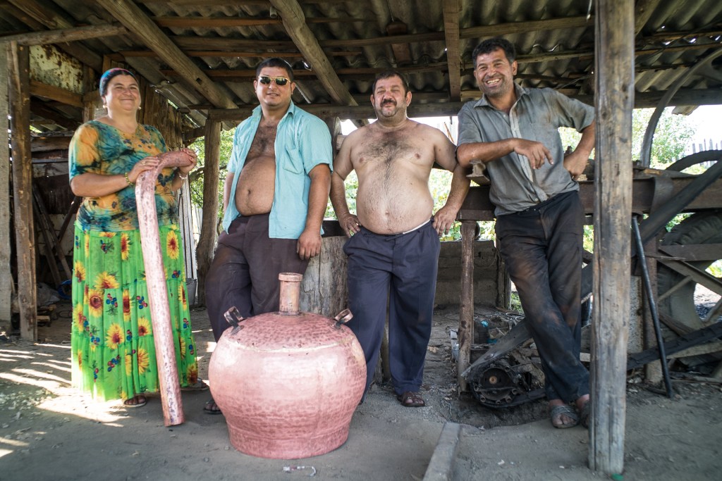 Nea Pițu, bulibașa din Corcova, a muncit din greu și a construit case pentru toţi cei patru băieţi ai lui. I-a învățat pe copii și pe nepoți să bată foile de aramă pe nicovală, să sufle în foale, să ungă cazanul cu suc de roșii până capătă o nuanță caldă, portocalie, apoi să-l lustruiască cu tărâțe de grâu și de porumb. Toamna, când se coceau prunele, bărbații n-aveau vreme nici să stea la masă să mănânce, atât de multe comenzi primeau, ne-a povestit nea Pițu în 2014, când l-am intervievat prima dată.