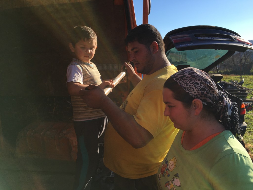 Între 2015 și 2016, am filmat un documentar despre Marina și Geo care pleacă în Franța – filmul a primit premiul pentru debut la festivalul TIFF de la Cluj, unde am mers împreună cu ei. Pe 30 iulie 2017 s-a născut Maria, fiica lor mijlocie, căreia i-am devenit moși, un rol important în comunitățile din sud. Moașa îi „ursește” viitorul, așa că i-am pus la capul patului o carte, o agendă și un pix și i-am ursit să se facă scriitoare și să spună povestea familiei ei atunci când va crește. În același an, am publicat cartea „Acasă, pe drum”, în care un capitol mare e dedicat căldărarilor din Corcova.