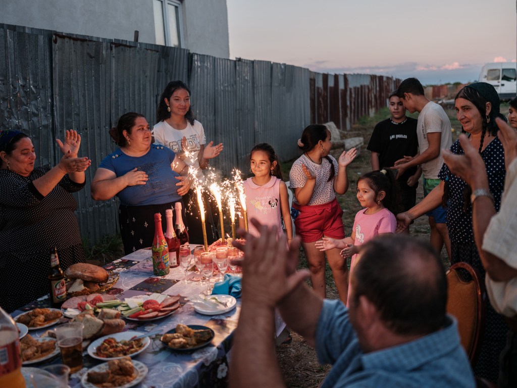 Petrecerea spontană se întinde până seara târziu. Asfaltul încă ne arde tălpile prin pantofi, deși soarele a apus – temperatura nu va coborî sub 35 de grade Celsius decât la miezul nopții. Femeile au început să danseze în curte, iar bărbații au ieșit pe stradă să vorbească despre mașini. „Ai văzut tu în Corcova vreo mașină mai nouă de 2017?”, râde Cioabă.