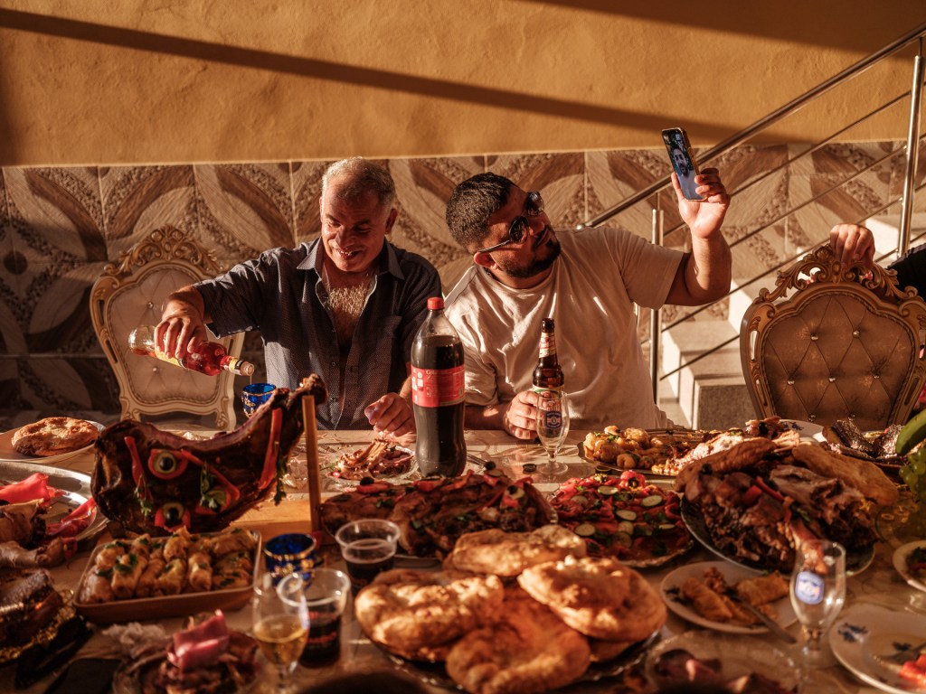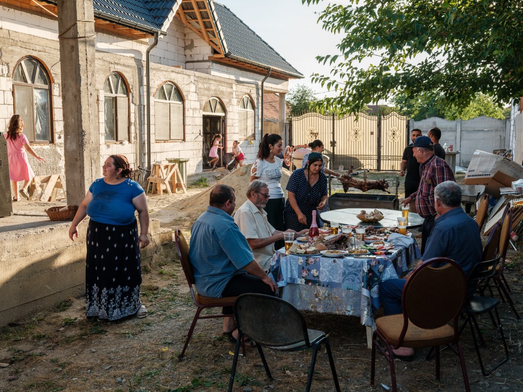 Bărbații stau la masă, iar femeile îi servesc. Doar eu sunt invitată alături de bărbați și încerc s-o conving pe Gabi să se așeze lângă mine, pentru că n-am mai văzut-o de doi ani, de la botezul fetelor. Îmi spune că ea nu stă în fața bărbaților, că îi e rușine. Femeile din generația ei nu mănâncă împreună cu bărbații, iar pe stradă se feresc să treacă prin fața lor. Cei mai tineri, cum sunt Marina și Geo, nu respectă întotdeauna această tradiție, deși, în continuare, femeile sunt cele care servesc la masă în timp ce bărbații stau jos.