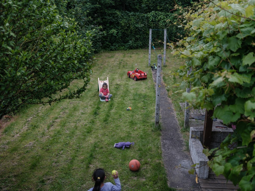 Maria și Andreea se joacă în grămada de nisip pentru construcții și nu vor să mănânce nimic; bunicii le-au adus o plasă cu dulciuri și curtea e deja plină de ambalaje goale. Ne înțelegem cu ele în engleză, pentru că româna e limba pe care o stăpânesc cel mai puțin. Romani e limba lor maternă, franceza e limba în care învață la școală și pe care o vorbesc în Belgia, iar româna o folosesc rar – căldărarii vorbesc românește doar când suntem noi în vizită.