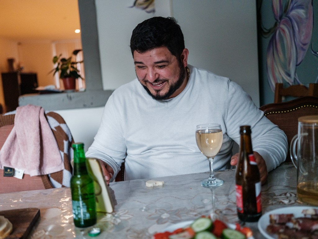 Se așază la masă Alin, 32 de ani, și soția lui, Mirela, 31, care locuiesc în Belgia, la cinci kilometri distanță de Geo, în La Louvière, împreună cu cei trei copii ai lor: Raj, 15 ani, care s-a născut cu meningocele, o malformație congenitală rară, Alin, 11, și Selina, 9, pe care o s-o vedem toată luna la Corcova dansând în fața telefonului, în filmulețe pentru TikTok.