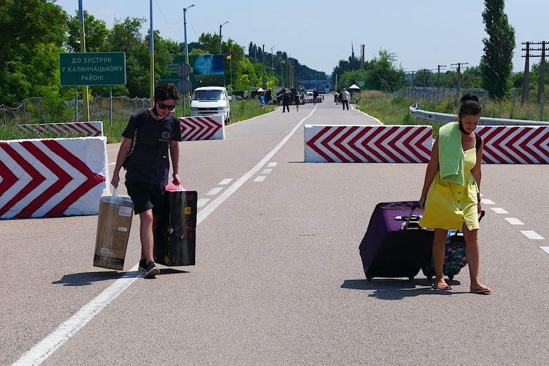 Cam 2000 de oameni și între 100 și 200 de mașini trec zilnic într-o direcție sau alta. În general, își vizitează rudele. Mai sunt și unii ucraineni, mai puțin sensibili la geopolitică, care merg și în vacanță în Crimeea, la fel ca înainte de 2014, când resorturile de aici erau destinații turistice pentru milioane de ucraineni, ruși, germani etc.
