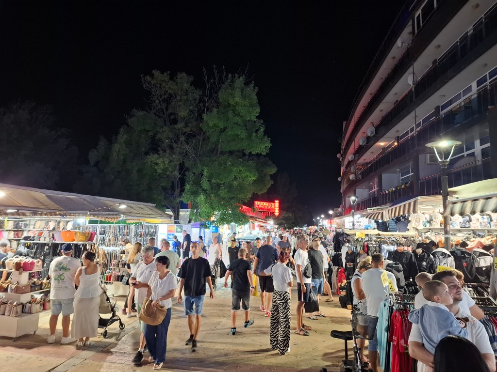Se aude muzica live la terase, se fac hore și sunt parcuri de distracții, alături de câteva magazine cu suveniruri. Străzile nu sunt aglomerate, iar cei mai mulți dintre turiști sunt vârstnici.