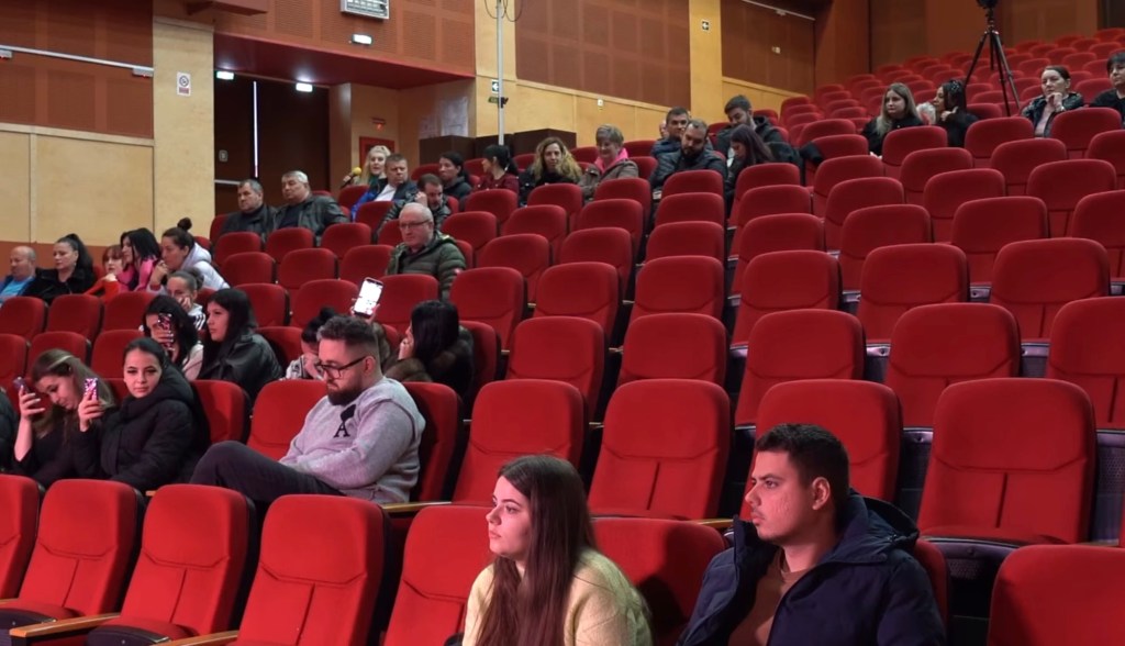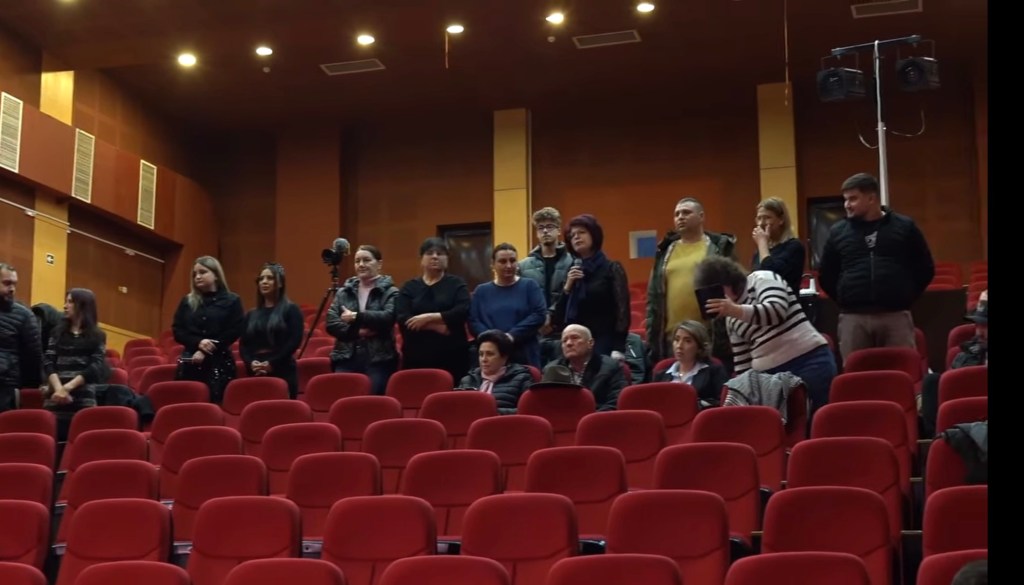 „Hai, că suntem primii”, spune un bărbat, la intrarea în Casa de Cultură din oraș. Este puțin trecut de ora 09:30 și încep să apară oameni. Vin în grupuri mici, pe jos sau cu mașina. Mai sunt 25 de minute până începe dezbaterea. „Ce chef n-am”, se aude și o femeie.