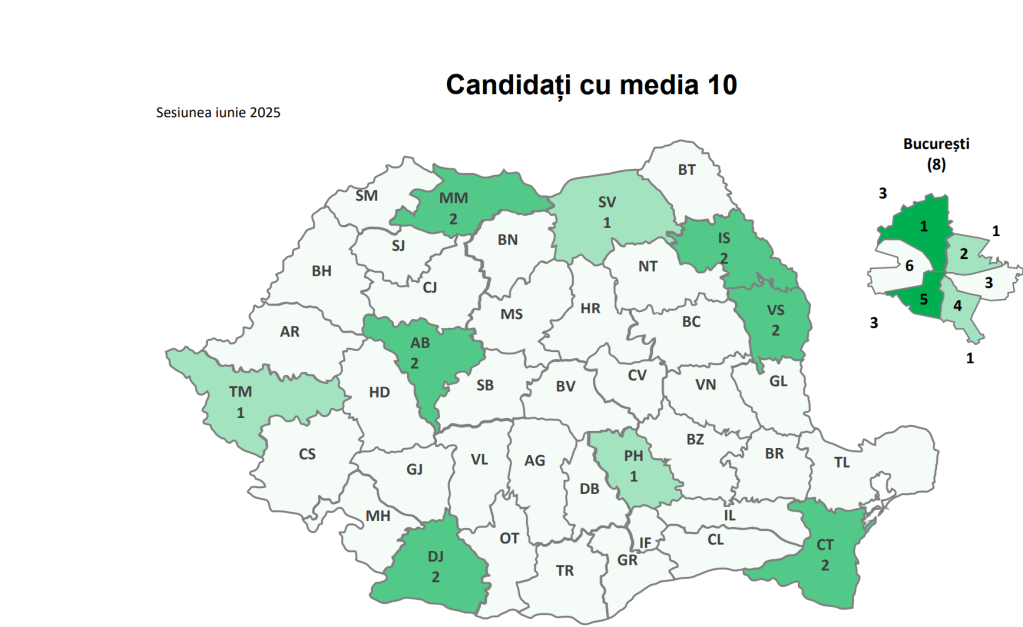 Sunt mai puține medii de 10 față de anul trecut. La examenul de Bacalaureat 2024, sesiunea iunie-iulie, au fost 39 de medii de 10, după afișarea rezultatelor înainte de contestații.