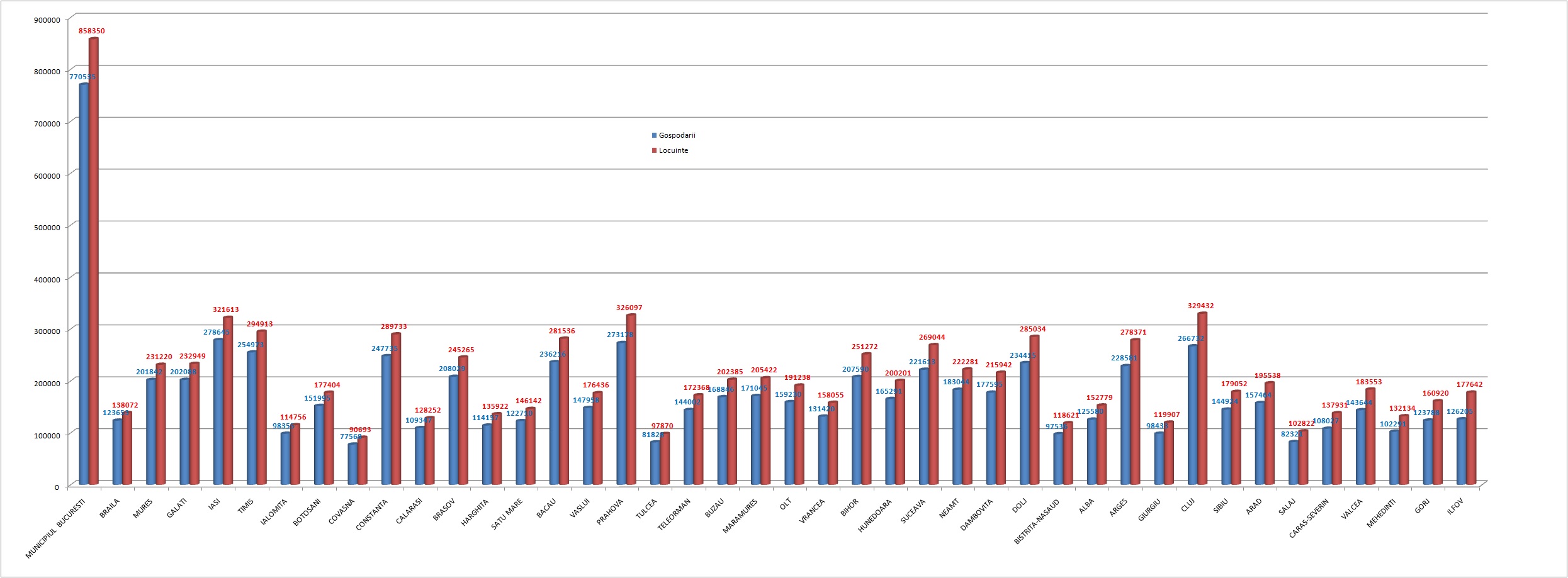 Romania dispune de 8,92 milioane de locuinte si de 7,47 milioane de gospodarii. INS: Este relevant faptul ca in timp ce numarul populatiei scade, fondul de locuinte creste