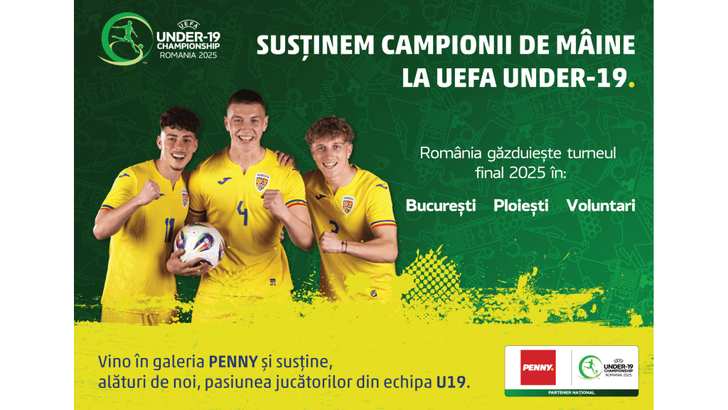 Trei meciuri, o singură inimă care bate pentru România. În perioada 13-26 iunie, țara noastră găzduiește Campionatul European de Fotbal Under 19, competiție în care tinerii tricolori vor întâlni unele dintre cele mai puternice naționale de juniori din Europa. Cu sprijinul PENNY, sponsor al tuturor echipelor naționale de fotbal ale României și partener oficial al FRF, acest turneu devine mai mult decât o competiție sportivă, devine o celebrare a performanței, a speranței și a viitorului fotbalului românesc.