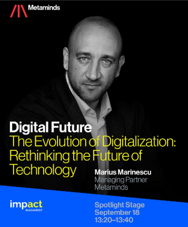 „Digitalizarea nu este un drum liniar, ci o spirală care redefinește constant societatea și economia. În această nouă eră, puterea nu se mai măsoară doar în infrastructură clasică, ci în date, algoritmi și reziliență. În același timp, trebuie să recunoaștem limitele actuale ale modelelor de inteligență artificială bazate pe LLM-uri: acestea vor fi înlocuite de world models, capabile să învețe din realitatea senzorială și să susțină interacțiuni digitale mai sigure și mai democratice. Viitorul digitalizării nu va fi definit de viteză și scalabilitate, ci de scop și reziliență, de capacitatea noastră de a construi tehnologii care servesc interesul public, protejează suveranitatea digitală și amplifică valorile umane” a adăugat Marius Marinescu, Managing Partner, Metaminds.