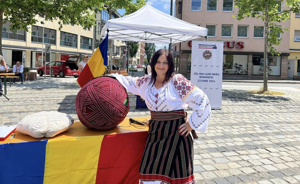Brâul românesc a fost măsurat, în urmă cu o zi, de o comisie de la Cartea Recordurilor în centrul oraşului Nürnberg, pe Jakobsplatz.