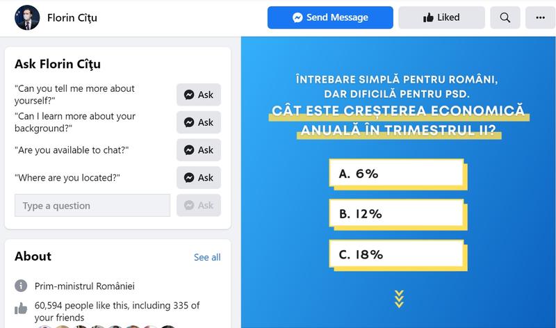 Florin Cîțu probabil avea alte așteptări având în vedere că pe data de 30 iulie a avut o postare prin care întreba românii cu privire la creșterea economică așteptată. Erau trei variante puse de el: 6, 12 și 18%.