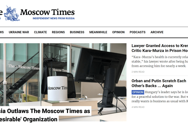 The Moscow Times s-a mutat în Țările de Jos după ce Rusia a introdus legi ample de cenzură la scurt timp după lansarea invaziei pe scară largă a Ucrainei în februarie 2022.