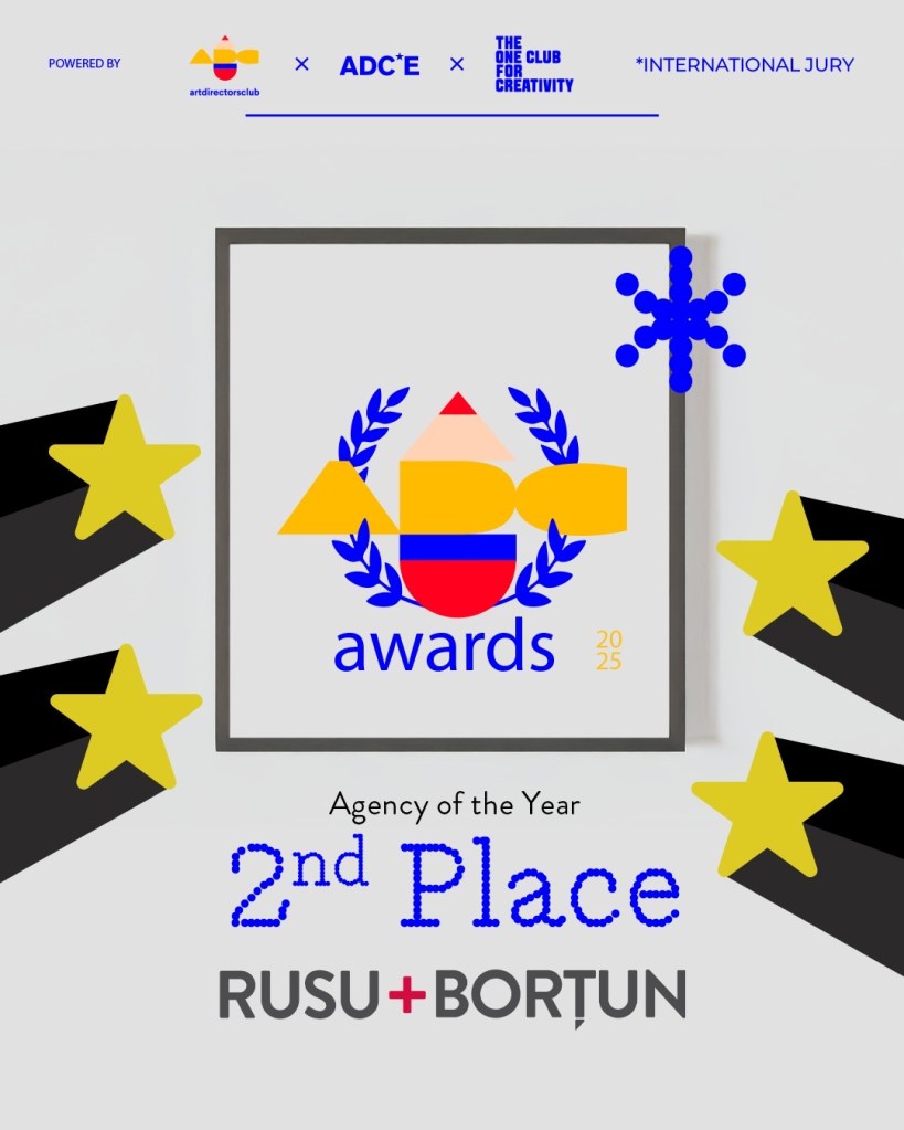 București, România – După un an marcat de recunoaștere internațională la Cresta AwardsGolden Drum International Festival of Creativity și ADCE – Art Directors Club of Europe, Rusu+Bortun este desemnată a doua cea mai creativă agenție din România la ADC*RO Awards 2025 — și cea mai performantă agenție independentă din clasamentul general.