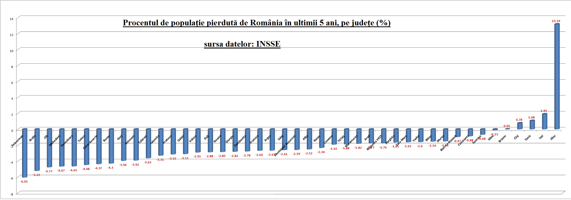 Mai exact, 375.724, ca să fim riguroși. Dar nici aceste date nu trebuie privite cu sfințenie, întrucât ele nu includ muncitorii români care pleacă temporar și lucrează la negru pe afară, dar continuă să fie ”prezenți ” în statisticile românilor rezidenți. Partea proastă e că grupele de muncă cele mai afectate sunt 20-24 ani (scădere cu 17% în ultimii 5 ani), cea de 30-34 de ani (scădere cu peste 10%) și cea de 40-44 (avem scădere de 8%). Adică cei apți de muncă. Teleorman, Brăila, Olt și Mehedinți sunt județele care au pierdut cea mai mare populație ca pondere, în vreme ce Ilfov. Iași, Timiș, Cluj și Brașov sunt singurele județe care au atras locuitori.