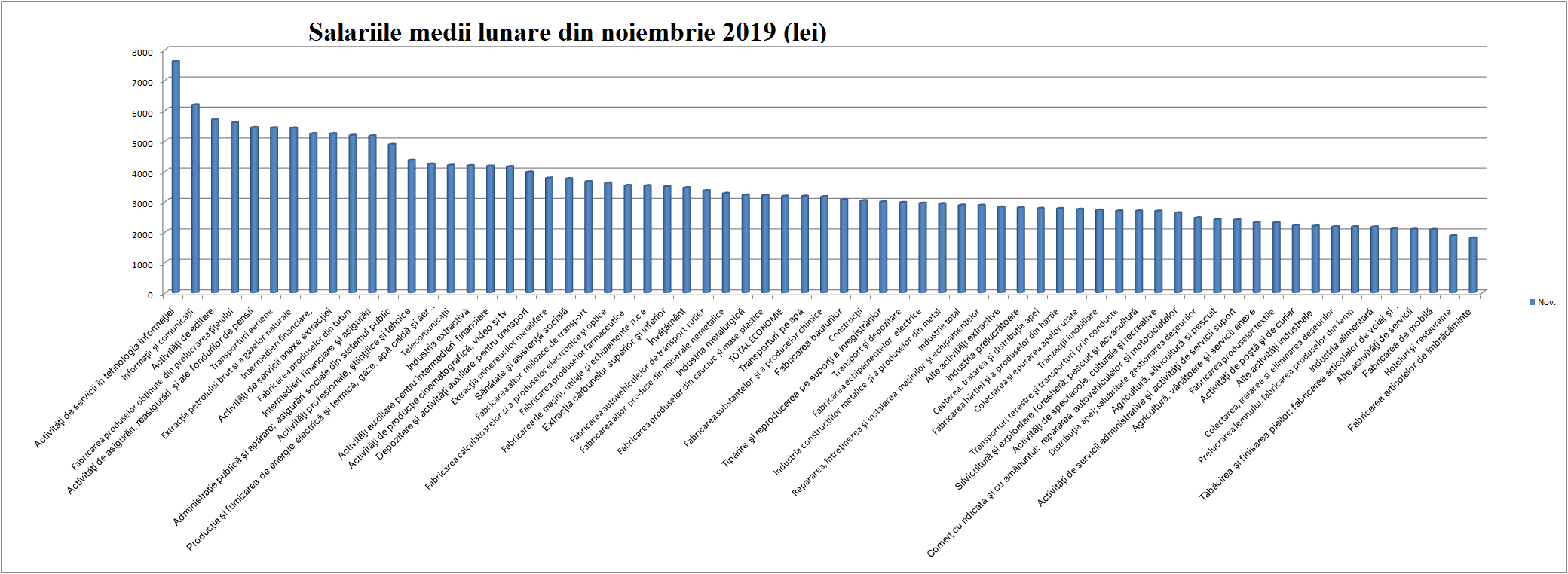Mai jos, salariile medii nete din noiembrie 2019 în ordine descrescătoare