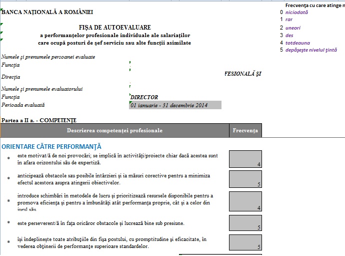 Stiu, de cand Mugur Tolici s-a pus pe treaba si face auto- evaluari si contra-evaluari (confrunta auto-evaluarea salariatului cu evaluarea aceluiasi angajat de catre sef), lucrurile sunt in directia buna. Riscul este ca ce care face evaluarile sa fie un apropiat/prieten al celui evaluat, caz in care…