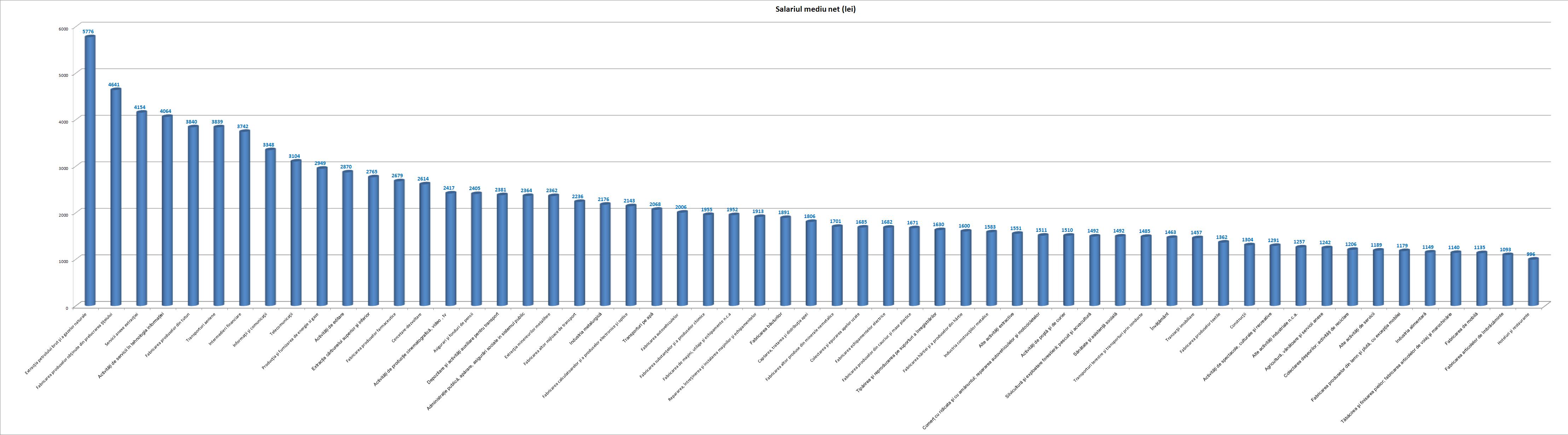 In luna septembrie 2014, salariul mediu net a fost de 1698 lei, in crestere fata de luna precedenta cu 15 lei (0,9%), a transmis joi Statistica. Valorile cele mai mari s-au inregistrat in extractia petrolului brut si a gazelor naturale (5776 lei), iar cele mai mici in hoteluri si restaurante (996 lei). Pe judete, castigul salarial mediu lunar net (la nivelul intregului an 2013) s-a situat sub media pe economie in 36 dintre judete. Cel mai scazut nivel, respectiv de 1130 lei s-a inregistrat in judetulHarghita, cu 28,4% mai putin decat media pe economie. La polul opus s-a situat castigul salarial mediu lunar net realizat in Municipiul Bucuresti (2304 lei), cu 45,9% peste media pe economie. In companiile de stat castigurile salariale medii orare brute au depasit media pe economie cu 16,2%, iar cele nete cu 15,1%. In societatile cu capital privat castigurile salariale medii orare brute s-au situat cu circa 6,0% sub media pe economie.