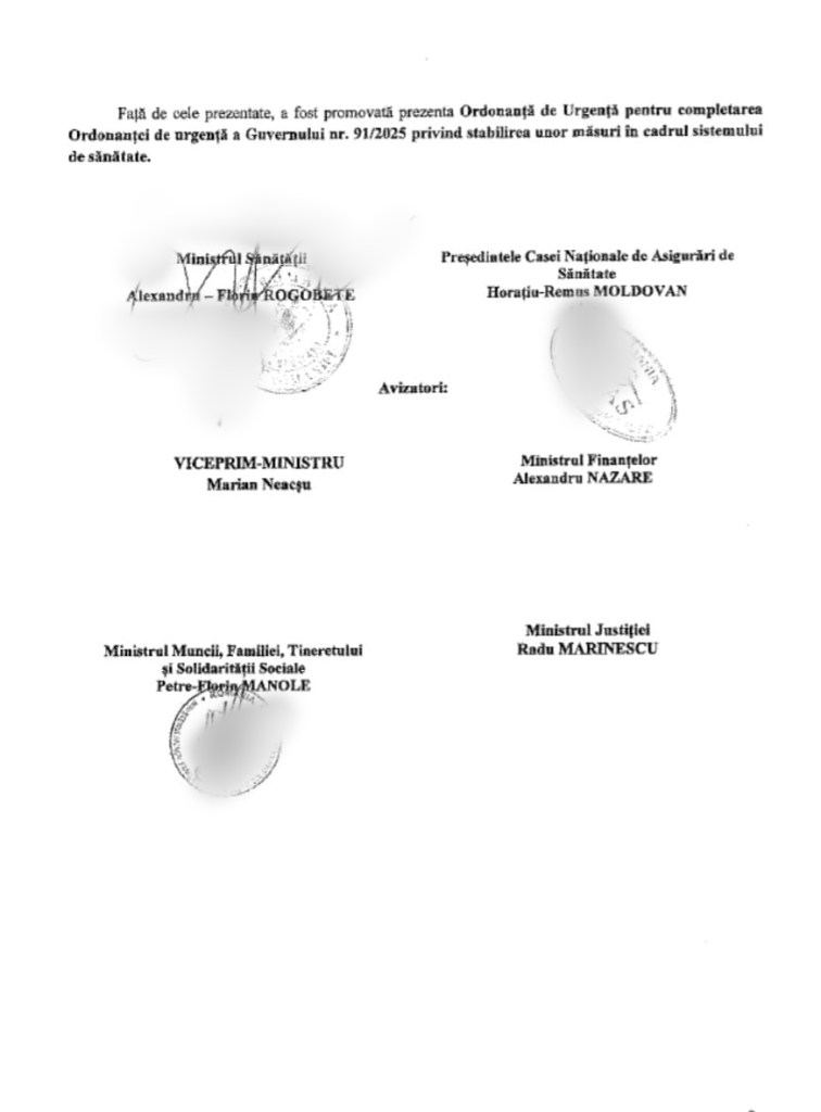 Din 6 avize necesare pentru a putea fi luat în discuție de CES, documentul avea, însă, doar 3: pe cel al ministrului Sănătății, Alexandru Rogobete, al președintelui Casei Naționale de Asigurări de Sănătate, Horațiu Moldovan, și al ministrului Muncii, Petre Florin Manole.