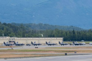 De asemenea, pe pista bazei militare, un panou cu inscripția „Alaska 2025” și covorul roșu sunt pregătite pentru sosirea celor doi lideri.