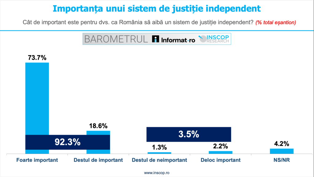 92.3% dintre participanții la sondaj cred că este important ca România să aibă un sistem de justiție independent.